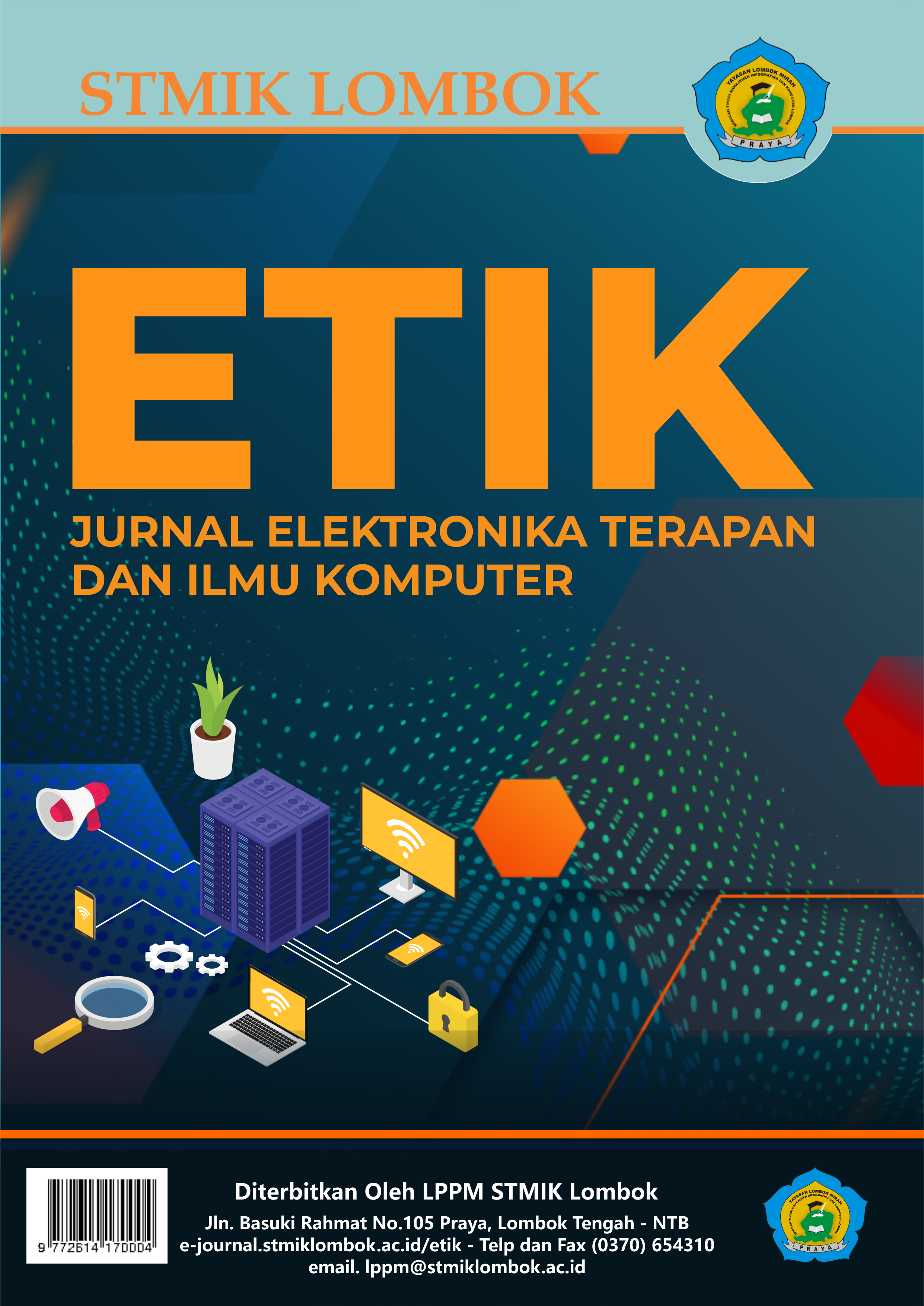 ETIK (Jurnal Elektronika Terapan dan Ilmu Komputer) diterbitkan oleh LPPM STMIK Lombok sebagai wadah untuk mempublikasikan artikel tentang pengetahuan baru dan penelitian dengan isu terkini.