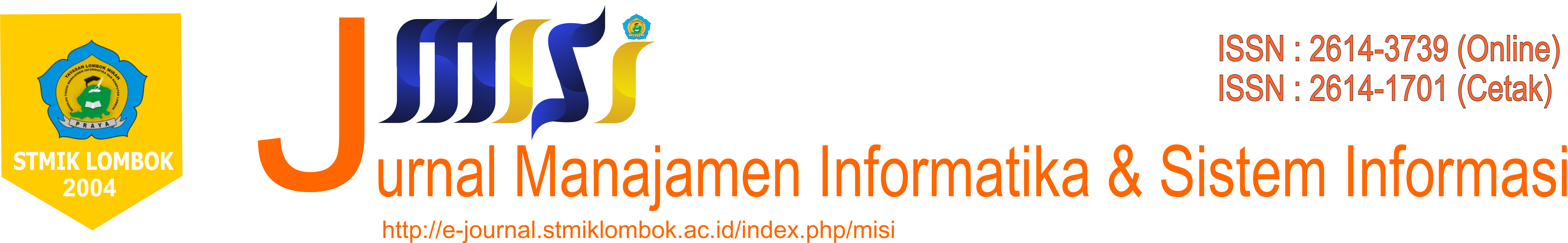 MISI (Jurnal Manajemen dan Sistem Informasi) diterbitkan oleh LPPM STMIK Lombok sebagai wadah  untuk mempublikasikan artikel tentang pengetahuan baru dan penelitian dengan isu terkini yang berkaiatan dengan Teknologi Informasi, dengan topik Informatika, Sistem Informasi, Rekayasa Perangkat Lunak, Audit Sistem Informasi,   E-Goverment. Jurnal ini terbit 2 (dua) kali dalam setahun yaitu pada bulan  Januari dan Juni. E-ISSN : 2614-3739